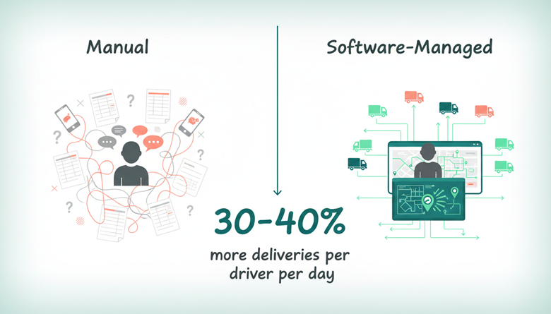 Businesses using dedicated delivery management tools complete 30-40% more deliveries per driver per day compared to manual coordination. That’s not a marginal gain. That’s an extra delivery window you’re leaving on the table.